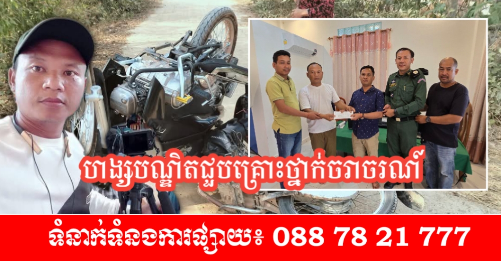 (ព្រៃវែង)៖ គេហទំព័រសារព័ត៌មាន «អាណាចក្រនគរភ្នំ» សូមថ្លែងអំណរគុណដល់ លោកវីរៈសេនីយ៍ឯក មុំ សារុំ អធិការនៃអធិការដ្ឋាននគរបាលស្រុកបាភ្នំ និងក្រុមការងារ ដែលបានយកចិត្តទុកដាក់ចុះសួរសុខទុក្ខ លោក ហង្ស បណ្ឌិត ចាងហ្វាងគេហទំព័រសារព័ត៌មាន”អាណាចក្រនគរភ្នំ” ដែលបានជួបគ្រោះថ្នាក់ចរាចរណ៍រងរបួសយ៉ាងដំណំខណ:កំពុងចុះយកព័ត៌មាន។