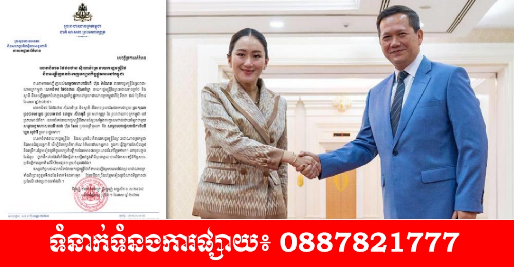 ភ្នំពេញ៖ លោកស្រី ផែផងថាន ស៊ីណាវ៉ាត្រថែមទាំងស្វាមី នឹងអញ្ជើញមកប្រទេសកម្ពុជា នៅថ្ងៃទី២៣ ខែមេសាខាងមុខនេះ ដើម្បីបំពេញទស្សនកិច្ចផ្លូវការរយៈពេល២ថ្ងៃ តាមការអញ្ជើញរបស់សម្តេចធិបតី ហ៊ុន ម៉ាណែត នាយករដ្ឋមន្ត្រីនៃកម្ពុជា។